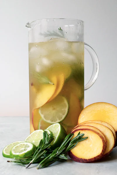 - Use a strainer to remove all solids. The tea, fruits, and rosemary should not be left in the drink more than 24 hours.
