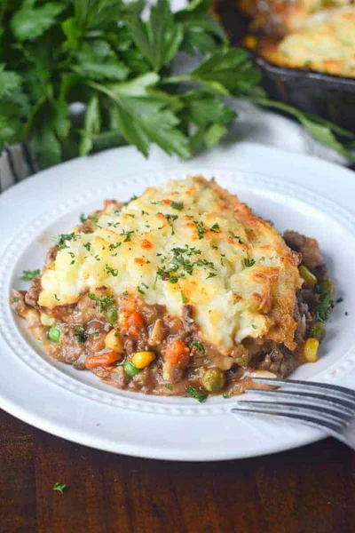 - Spoon potatoes onto the middle of the meat mixture. With a fork, spread potatoes from the center to the edges to form the top layer.